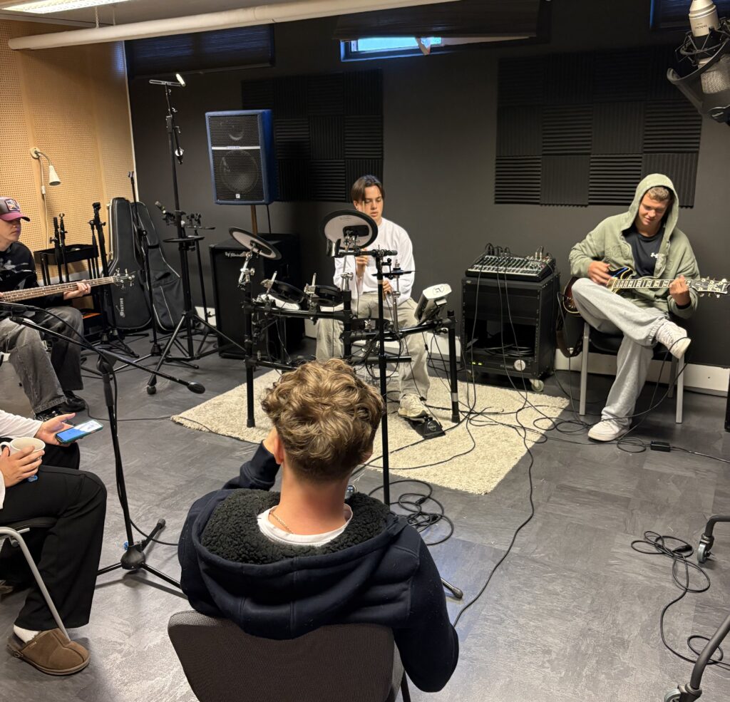 En dag på Musikkproduksjon består av mange kreative timer i studio for å produsere låter og beats. Av og til øver du også til en av skolens huskonserter, jobber med låtskriving og arrangering av låter eller rett og slett tar turen til Oslo for å besøke musikkbutikker og andre spennende steder. Lærerne finner du gjerne i klasserommet eller i studio med en god, varm kaffekopp i samtale med musikkelever om beats, et spørsmål om en mikrofon eller om sangteknikk.
